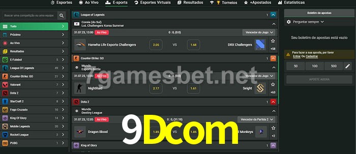 O 9Dcom oferece uma grande seleção de opções de apostas em e-sports com probabilidades competitivas
